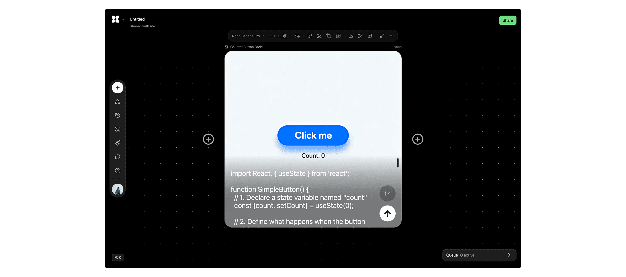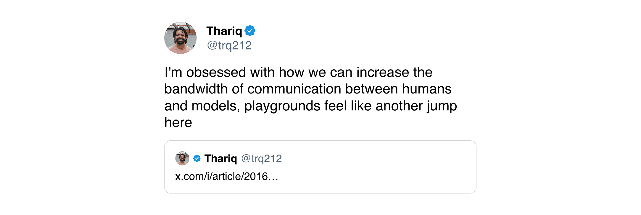 One day I was playing around in @floraai, a tool meant for these generative visual workflows. On a whim, I gave it a React component's code to see if it could generate an image of the interface (i.e. without relying on a browser's render engine). It was a sort of "do you know what you're actually doing"-type test. To my surprise, it did a pretty good job. Later that summer, when I hit a creative block on a feature I was building, I used Nano Banana to generate 10 variations of interface ideas in an effort to move forward. Nothing crazy, just images of what these 10 interfaces could look like. It helped me get unstuck, and it was a revelation - these image models had a much closer relationship to code than I previously thought. I was working in code, but thinking in images, and the speed was phenomenal. This, I thought, was a pretty good idea.