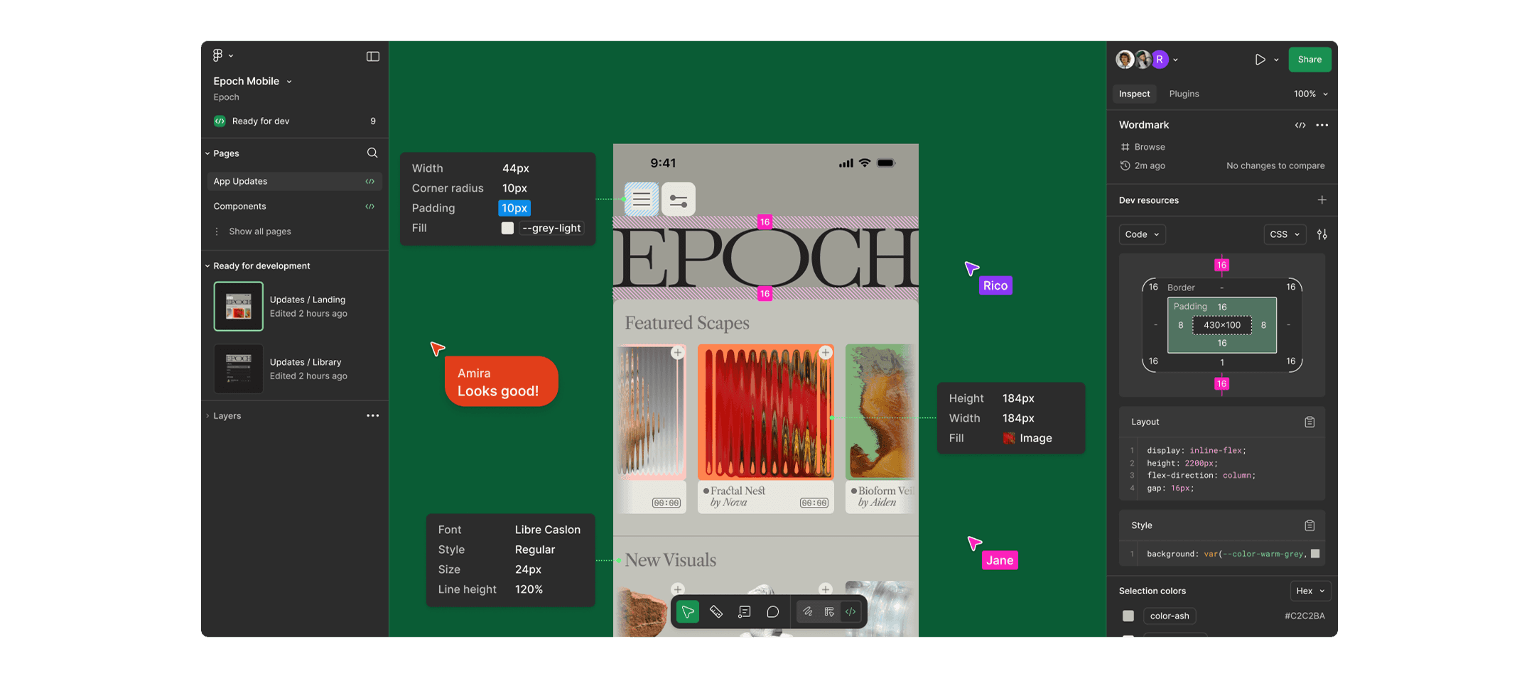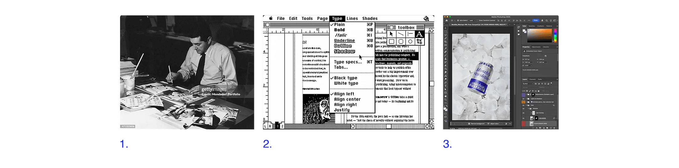 Then came Photoshop, and with it the concept of layers and canvases. Suddenly a complex spatial language was available to the designer, to be explored digitally and without fear of mistakes. You could, arguably for the first time, truly see and feel the interface of a program before it was created. Figma expanded on this immensely. Closer to code, and with a tighter language, Figma started blurring the barriers between design tools and software systems. It worked well because it was malleable enough to allow for the process while getting you closer to production.