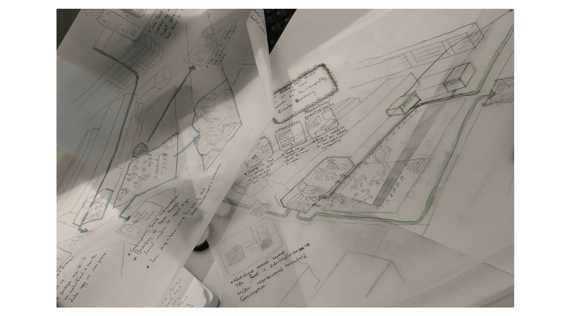 Before I was in tech I was an architect, and the way we produced images there was quite different. We drew on paper while talking through ideas. A pause before you spoke carried weight. Drawing over someone else's line with more pressure was an assertion. Speaking without drawing might mean you were still searching. And drawing without speaking might mean you had found something.
